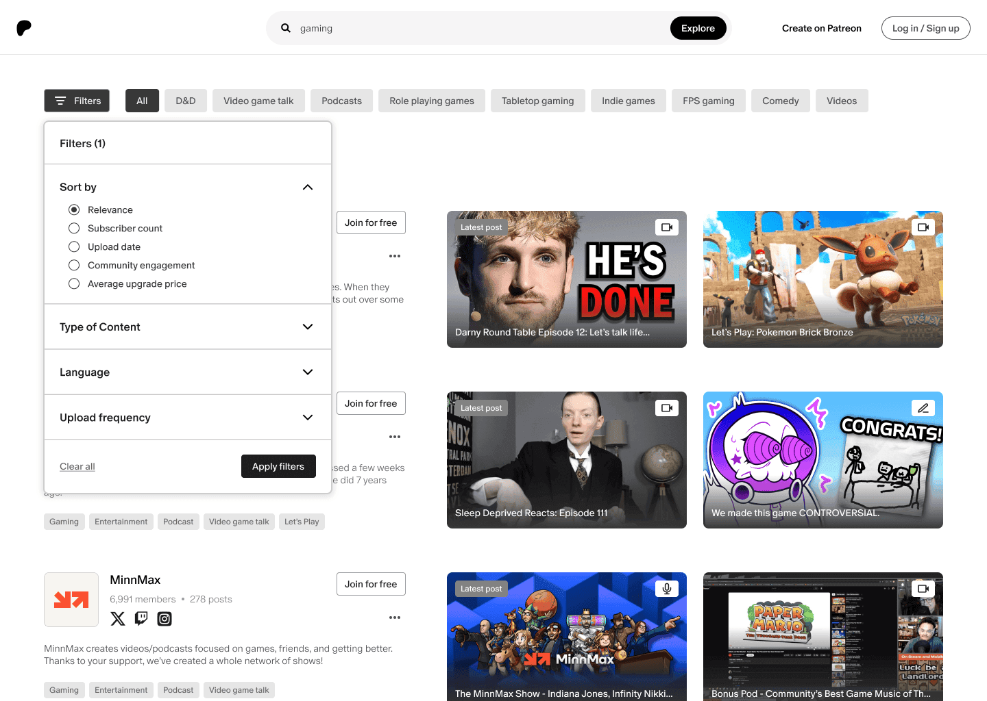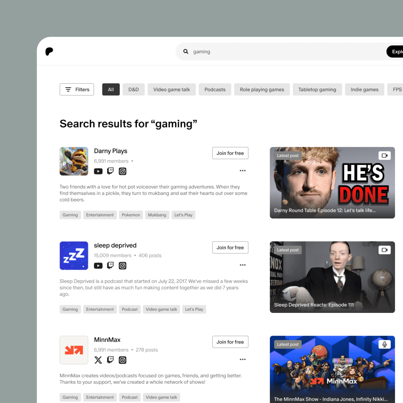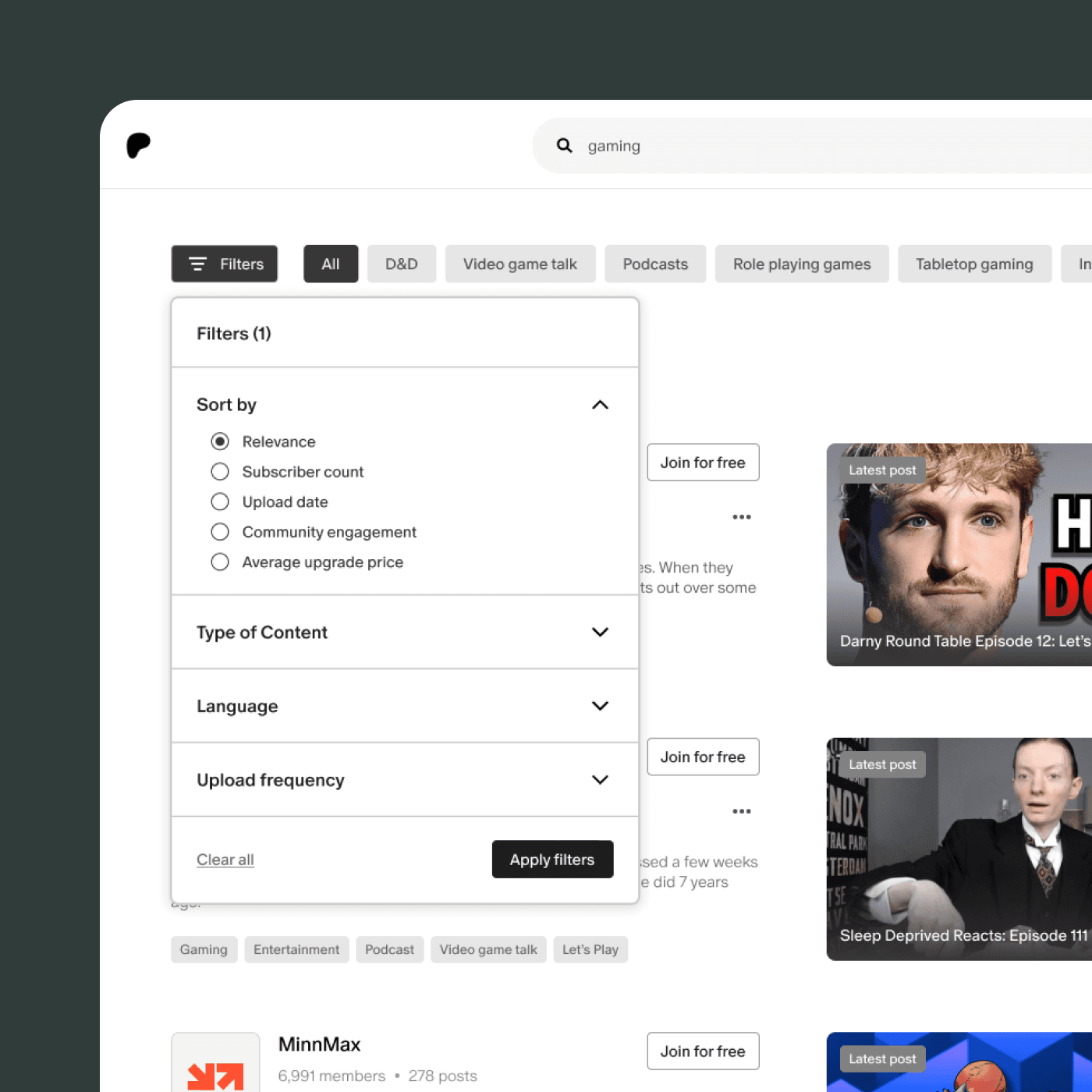 Filters were a highly mentioned feature add during research. This was more of a mental modal "must-have" when it comes to search results that was lacking in the existing Patreon design. Not only does it help users narrow their search, but it also elevates trust in the overall experience, which is crucial in a paid subscription platform like Patreon.